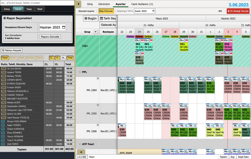 yaklaşan belgeler için yöneticiyi ve personeli otomatik uyarır. Sınav takvimi ve uçuş