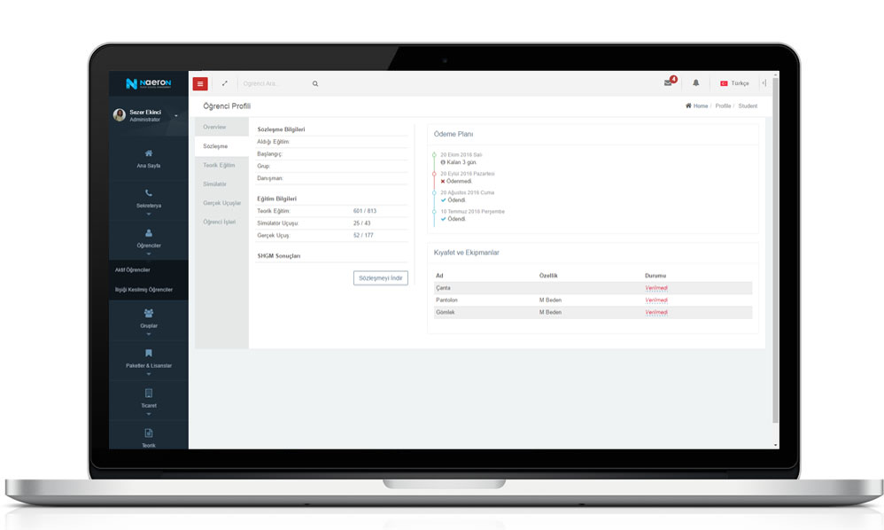 Naeron Uçuş Okulu Yönetim Sistemi hakkında daha detaylı bilgi almak ve demo kullanımı için bizimle iletişime geçin.