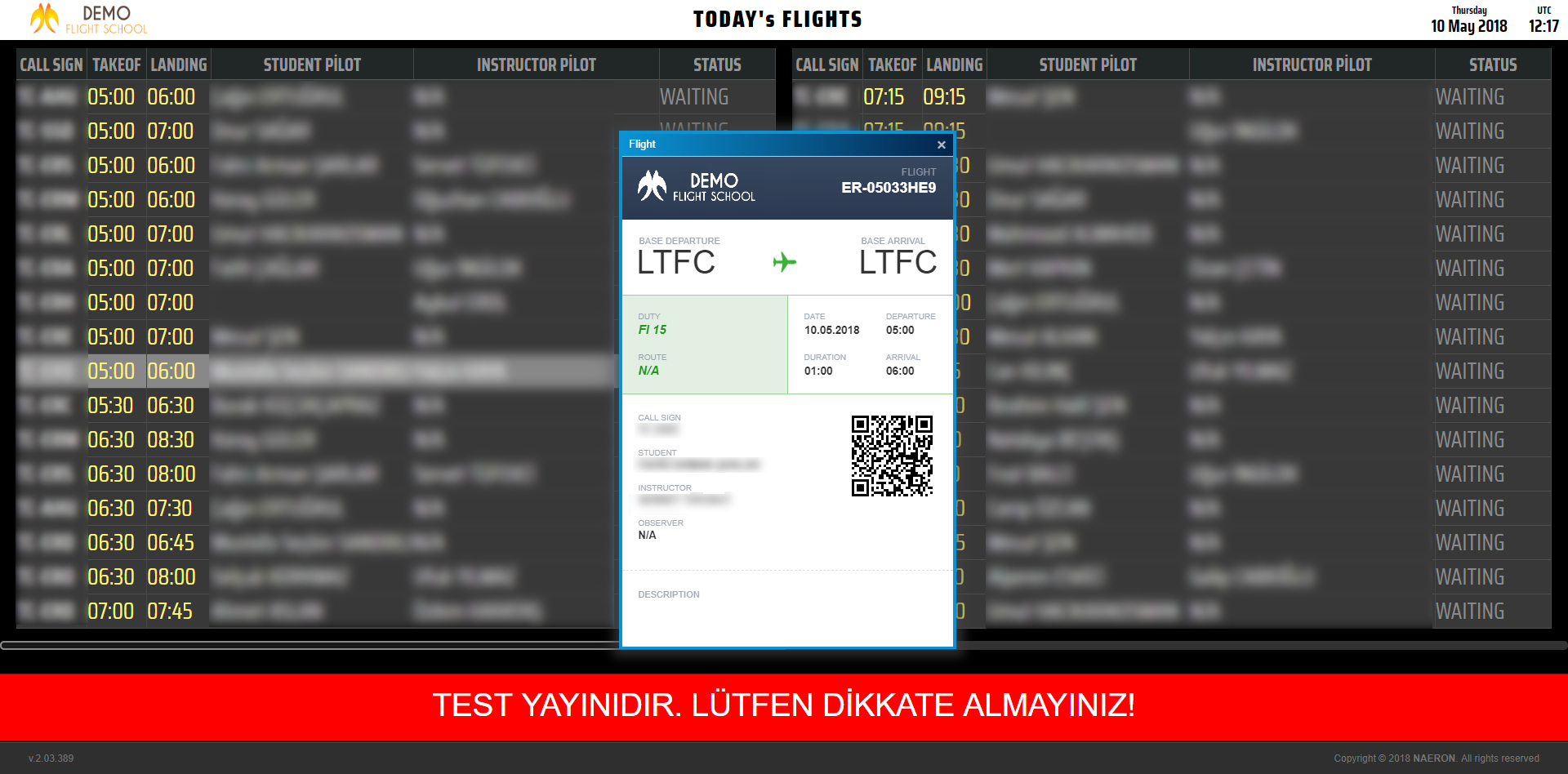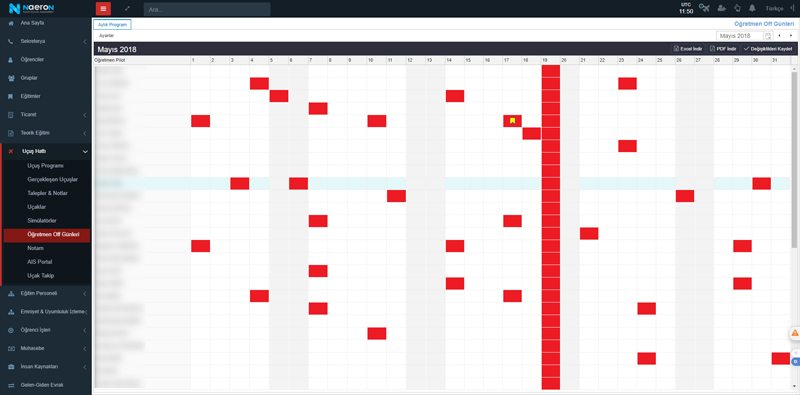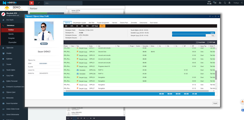 Uçuş eğitimi için uçuş rezervasyonu, uçuş planlama, gerçekleşen uçuşlar ve logbook gibi işlevleri gerçekleştiren modüldür.